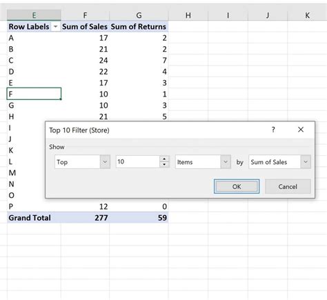 excel filter top 10 values