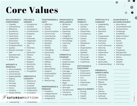list of core values and principles