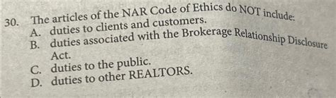 the articles of the nar code of ethics do not include