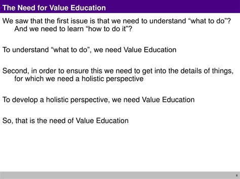 write an article on need of value education